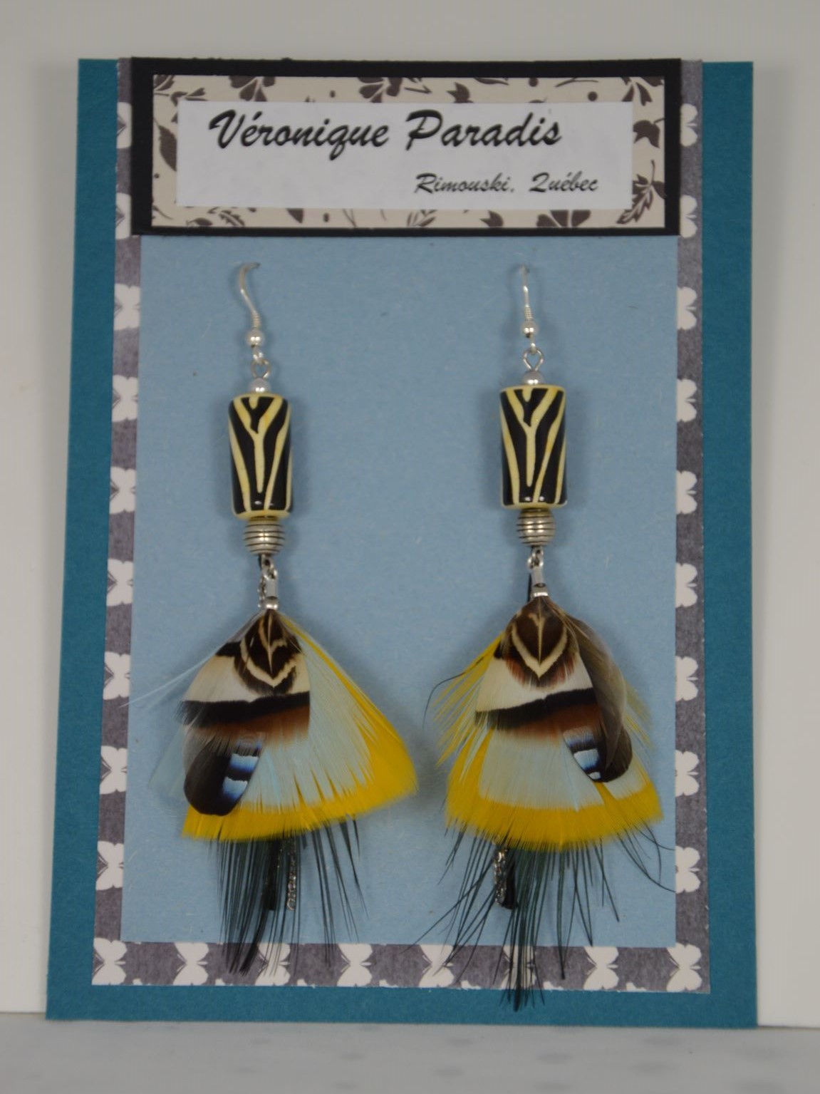 Voilà maintenant plus de 15 ans que je crée des boucles d'oreilles plumes. Grandement inspirée des couleurs de l'architecture de Gaudi et des mosaïques espagnols, elles sont faites de plumes naturelles et les attaches sont en argent 925.